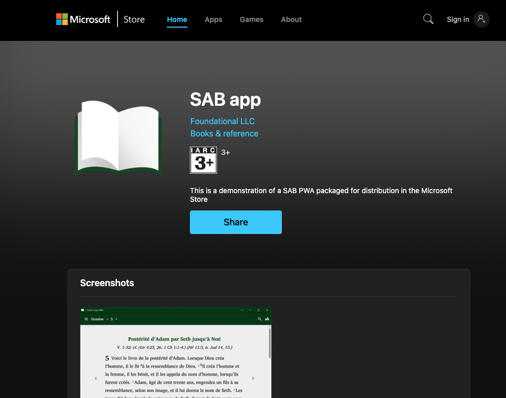 Good question! Imagine you have your app out for Android. You also have your PWA app up on the web. What does a SAB app in the Microsoft Store give you?